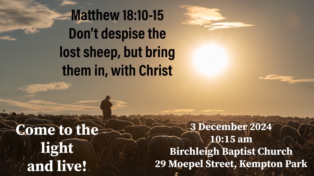 Matthew 18:10-14. By Pastor Nico van Zyl