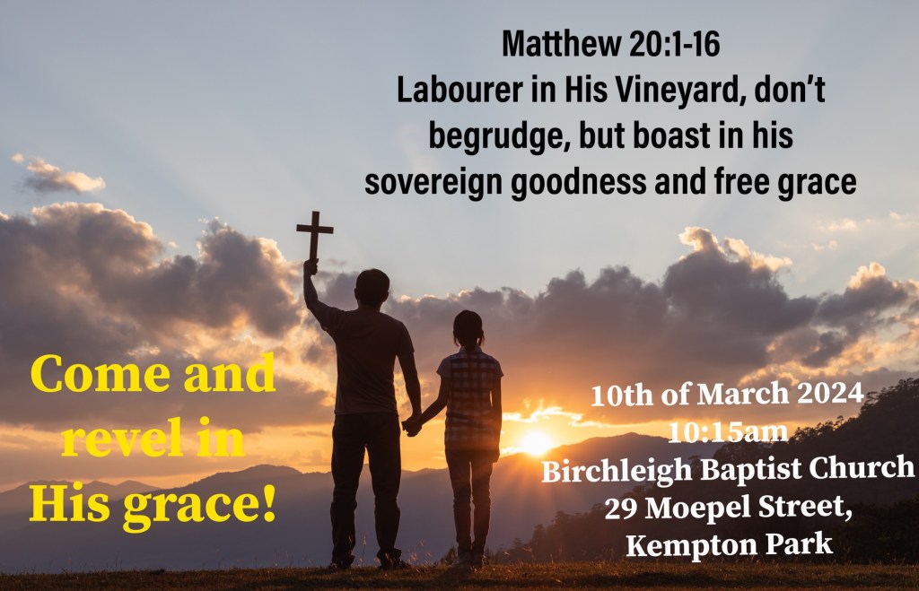 Laborers in his Vineyard, do not begrudge but boast in His sovereign goodness and free grace